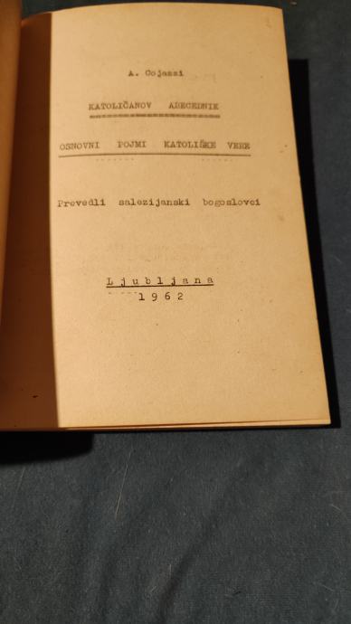 Katoličanov abecednik,avtor A.Cojazzi,osnovni pojmi katoliške vere, Ljubljana 1962 letnik, knjiga ima 140 strani, pošljem po pošti ali osebni prevzem.knjiga je v zaboju pod zaporedno številko 44.