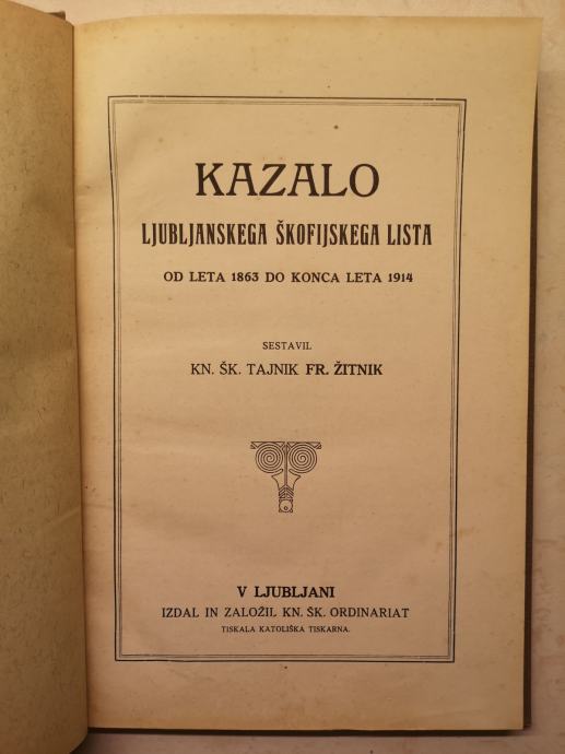 Naslov Kazalo Ljubljanskega škofijskega lista od leta 1863 do konca leta 1914 / sestavil Fr. Žitnik