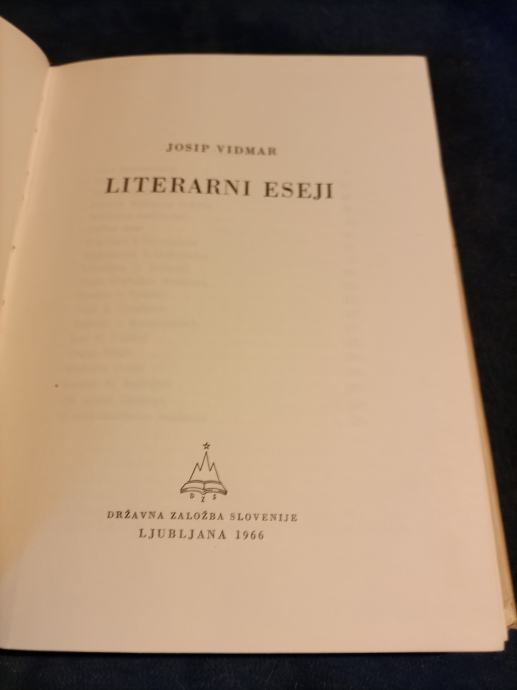 literarni eseji,avtor Josip Vidmar,drzavna zalozba Slovenije Ljubljana 1966 letnik, knjiga ima 287 strani, pošljem po pošti ali osebni prevzem.Knjiga je v zaboju pod zaporedno številko 61.
