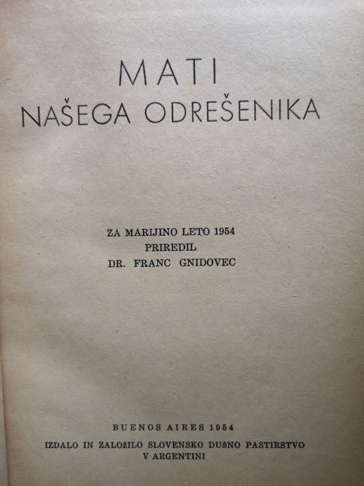 Naslov Mati našega Odrešenika / za Marijino leto 1954 priredil Franc Gnidovec