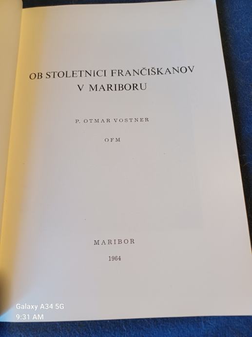 Ob stoletnici Frančiškanov v Mariboru,avtor P Otmar Vostner,Maribor 1964 letnik,knjiga ima 72 strani,pošljem po pošti ali osebni prevzem.knjiga je v zaboju pod zaporedno številko 46.