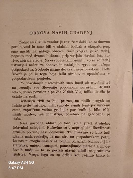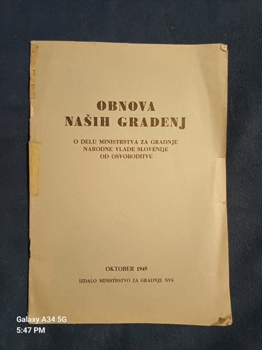 Obnova nasih gradenj,o delu ministra za gradnje narodne vlade Slovenije od osvoboditve,oktober 1945 izdalo minstrstvo za gradnje nvs,natisnila tiskarna ljudske pravice v Ljubljani,posljem po posti ali osebni prevzem.