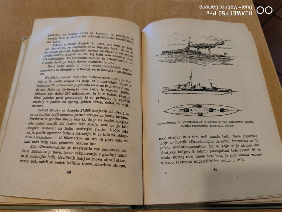 Poljudno znanstvena knjiga o zgodovinskem razvoju mornarice. Ilustrirana.