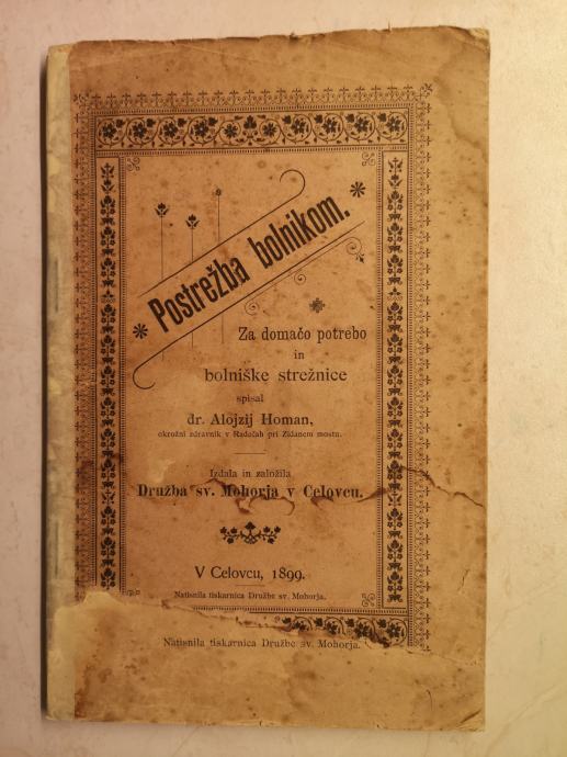 Naslov Postrežba bolnikom / za domačo potrebo in bolniške strežnice spisal Alojzij Homan