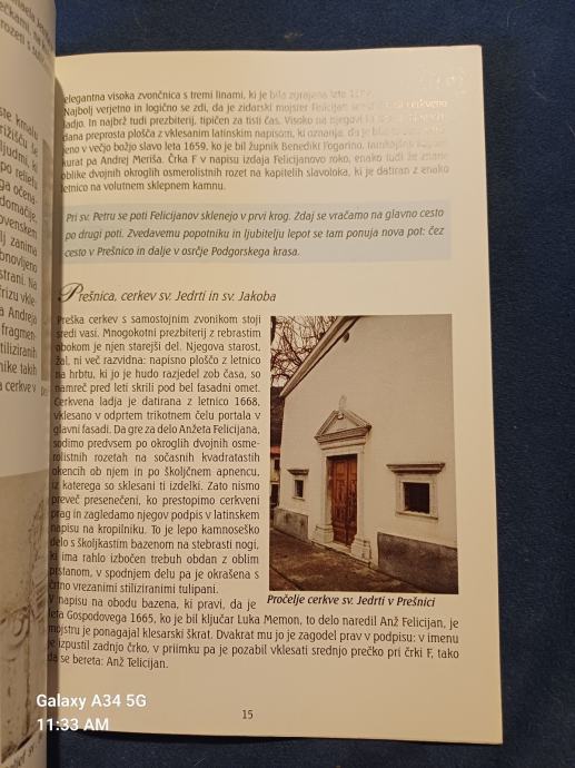 Po poteh mojstrov Felicijanov iz Rodika na razkrizju treh svetov Brkinov,Krasa in Istre,avtor Bozidar Premrl,letnik 2005,knjiga jma 30 strani,posljem po posti ali osebni prevzem.knjiga je v zaboju pod zaporedno stevilko 44.