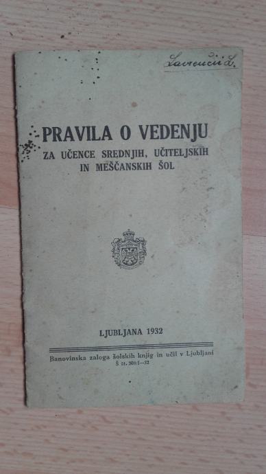 PRAVILA O VEDENJU ZA UČENCE SREDNJIH,UČITELJSKIH IN MEŠČANSKIH ŠOL