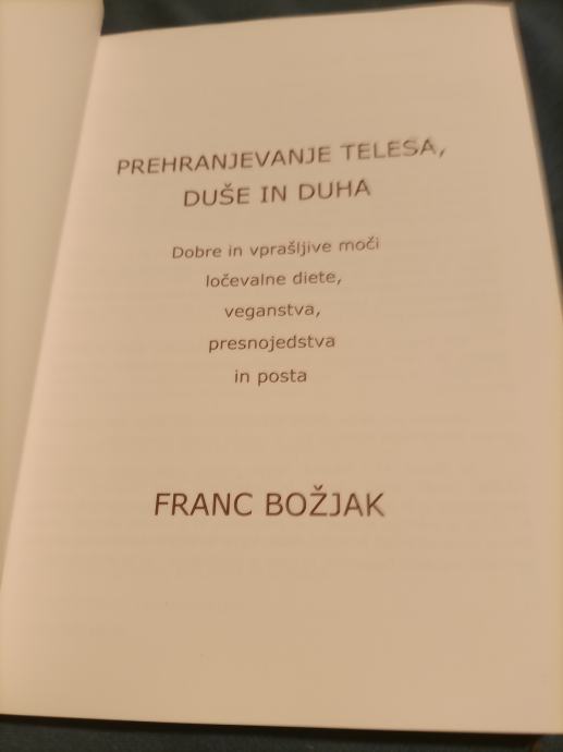 Prehranjevanje telesa, duše in duha,avtor Franc Bozjak,letnik 2008,knjiga ima 235 strani, pošljem po pošti ali osebni prevzem.knjiga je zelo lepo ohranjena.knjiga je v zaboju pod zaporedno številko 100.