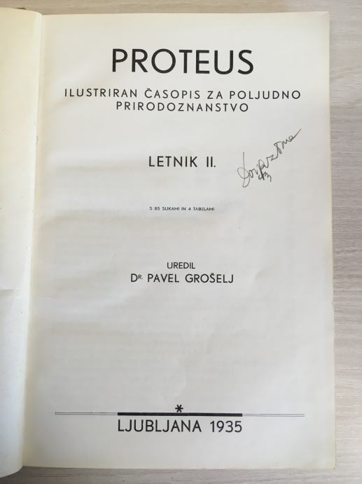 PROTEUS, ilustrirani časopis za poljudno prirodoznanstvo. 85 slik in 4 tabele. Uredil dr. Pavel Grošelj, 1935