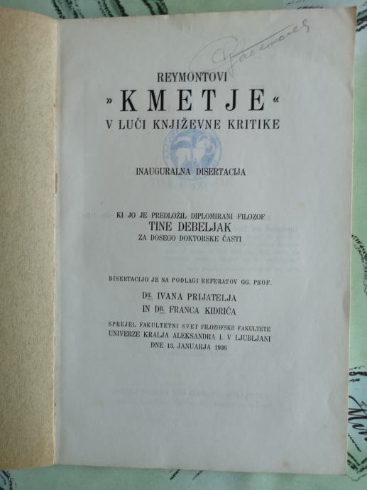 Reymontovi "Kmetje" v luči književne kritike / Tine Debeljak, 1936