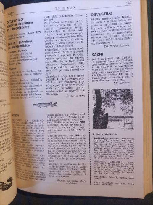ribič 1974(glasilo slovenskega ribištva),knjiga ima 368 strani, pošljem po pošti ali osebni prevzem.Knjiga je v zaboju pod zaporedno številko 15 A.