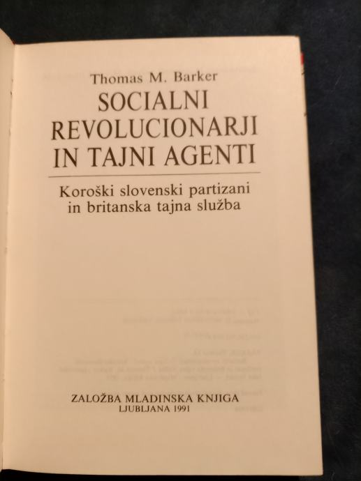 socialni revolucionarji in tajni agenti,Koroski Slovenski partizani in britanska tajna služba,avtor Thomas M.Barker, založba Mladinska knjiga Ljubljana 1991 letnik, knjiga ima 293 strani pošljem po pošti ali osebni prevzem.