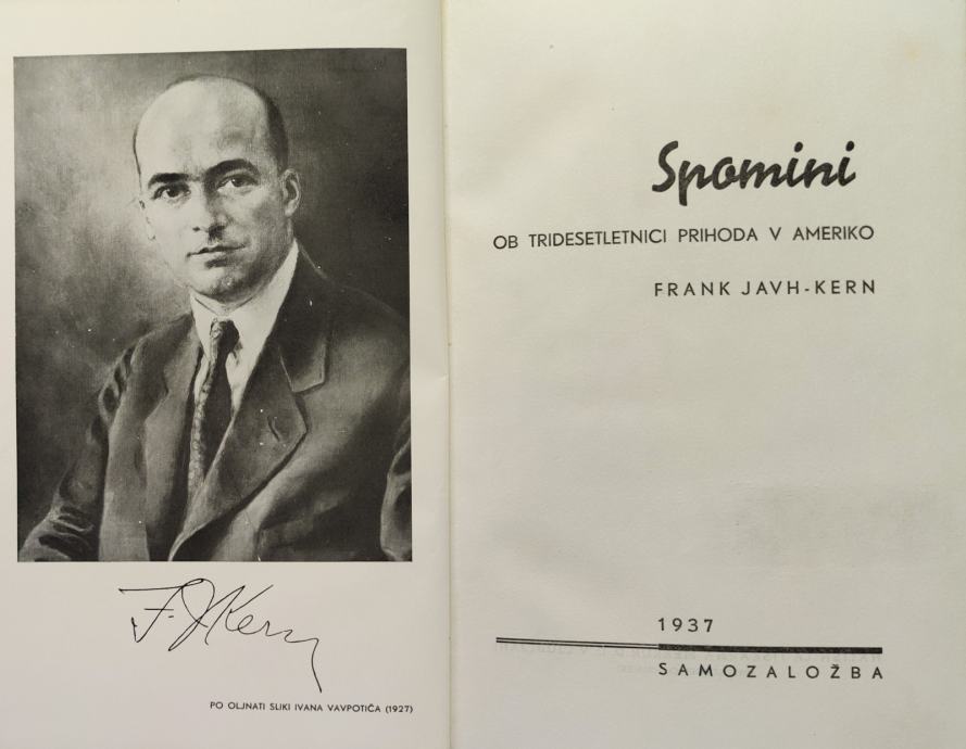 Spomini : ob tridesetletnici prihoda, Frank Javh Kern, 1937