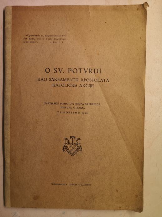 Naslov O sv. potvrdi kao sakramentu apostolata Katoličke akcije : pastirsko pismo dra Josipa Srebrnića ... za korizmu 1936.