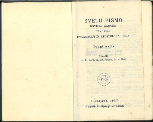 Sveto pismo Novega zakona Del 1 : Evangeliji in apostolska dela. 1937