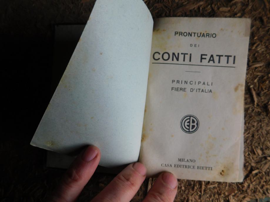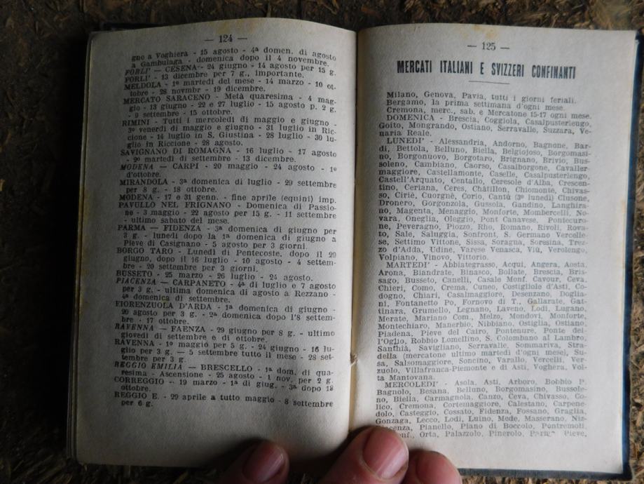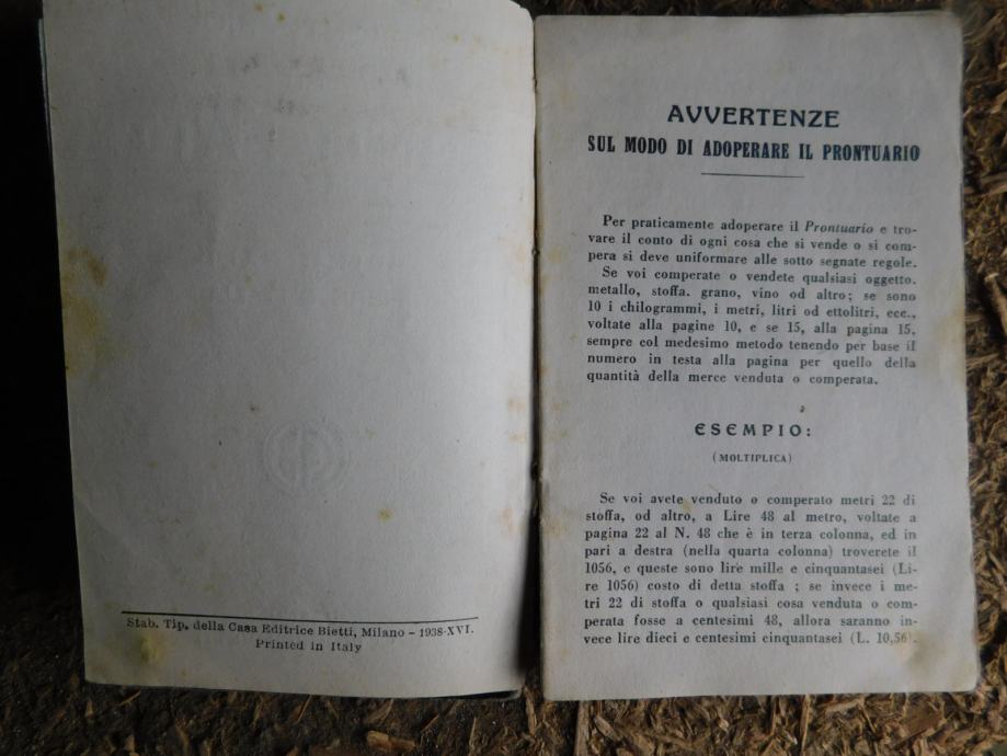 Trgovski priročnik iz leta 1938. Italijanski jezik, opredeljeni načini, kako določiti ceno za različno blago, na koncu seznam različnih sejmov, ki so se izvajali po ITA.. Zelo zanimiva zadeva.