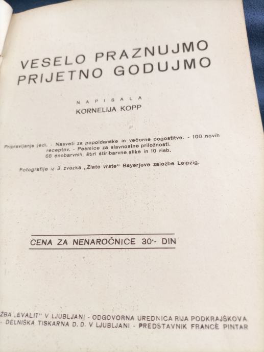 Veseli praznujemo prijetno godujmo,napisala Kornelija Kopp,izdala založba evalit v Ljubljani ,pošljem po pošti ali osebni prevzem.
