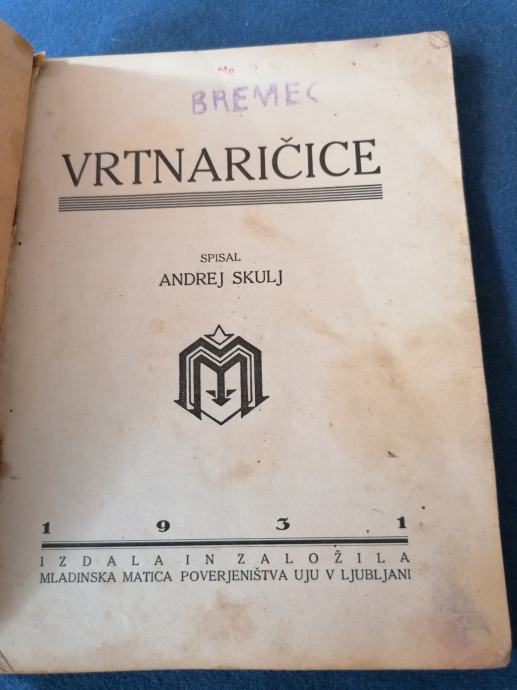 Vrtnaricice, spisal Andrej Škulj, letnik 1931 izdala in založila mladinska matica v Ljubljani, knjiga ima 77 strani, pošljem po pošti ali osebni prevzem.