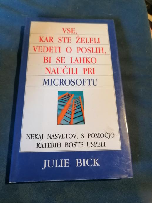 Vse, kar ste želeli vedeti o poslih, bi se lahko naučili pri Microsoftu,, nekaj nasvetov, s pomočjo katerih boste uspeli,, avtorica Julie Bick, učila 1999 letnik, knjiga ima 167 strani, pošljem po pošti ali osebni prevzem. Knjiga je v zaboju pod zaporedno številko 32 A.