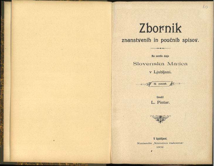 Zbornik znanstvenih in poučnih spisov. 1902 Zv. 4 / uredil L. Pintar