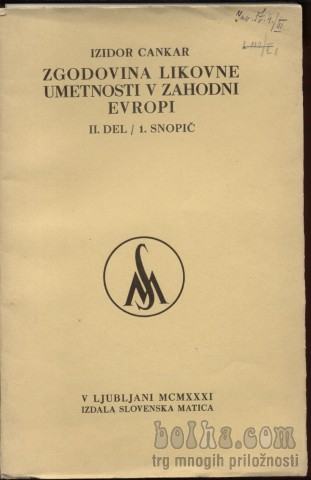 Zgodovina likovne umetnosti v zahodni Evropi - Izidor Cankar,Slovenska Matica 1931, 17x27cm,mehko vezano,po 5eur: