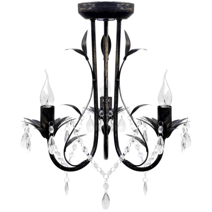 Dekorativni Art Noveau Stil Črni Kovinski Lestenec s Kristali 3 x E14