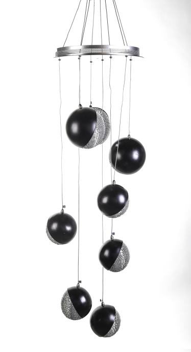Prodam dizajnerski luster - lestenec. Luster je v lepi srebrni barvi izdelan iz aluminija in črne plastike na 8 bunkic, ki se nastavijo po višini po vaši želji.
