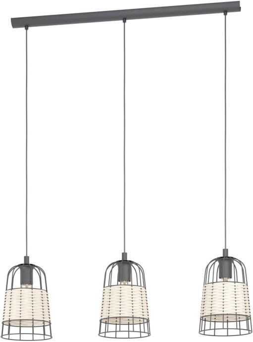 Viseča svetilka Anwick je izdelana iz kovine s tremi senčniki iz črnih žičnih okvirjev v kombinaciji s tkanimi trakovi iz ratana v naravnih barvah. Senčniki ustvarijo fascinantno igro svetlobe in sence takoj, ko se svetilka prižge. Viseča svetilka se brezhibno prilega trendom, kot sta staromodno in boemsko. Ponuja stilsko razsvetljavo v kuhinji, dnevni sobi ali jedilnici, na primer nad podolgovato jedilno mizo. Prikazane sijalke z žarilno nitko niso v obsegu dobave. Svetilka je primerna za vse sijalke s podnožjem E27.