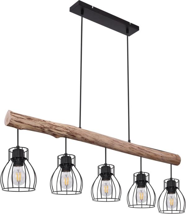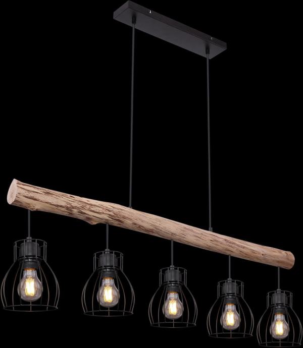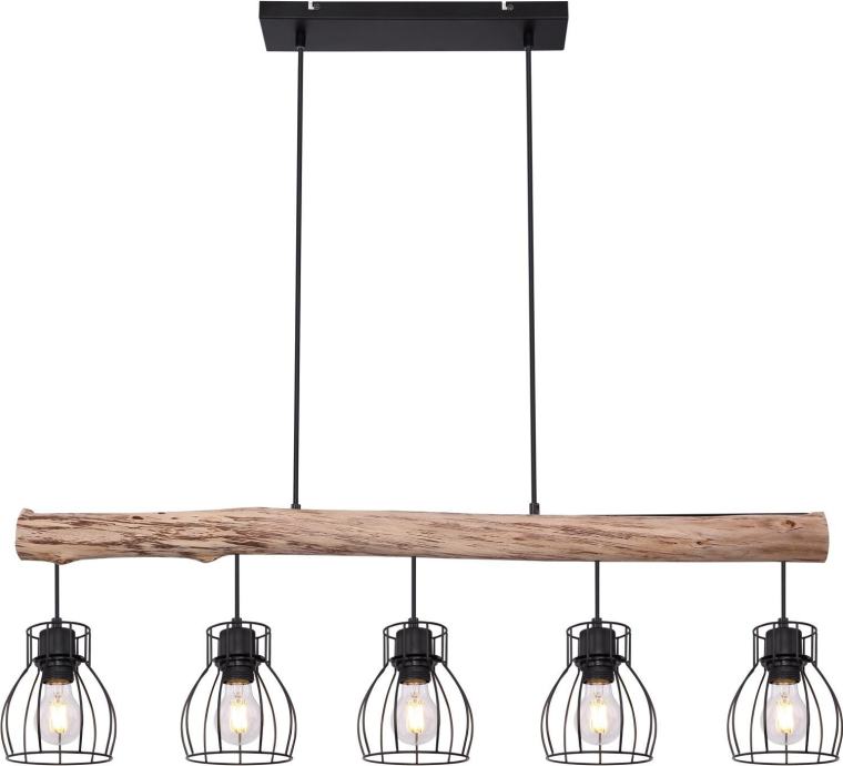 Ekstravagantna viseča svetilka Globo Mina iz črne kovine ustvari dober vtis v skoraj vsakem prostoru. Na visečem lesenem prečniku je nameščenih pet okovov E27, ki so obdani z rešetkastimi, okroglimi senčniki. S poljubno izbiro žarnice (5 x E27/maks. 40 W) lahko sami izberete jakost in barvo svetlobe te notranje svetilke. Podobo svojega bivalnega prostora lahko še polepšate z drugimi modeli iz te serije.