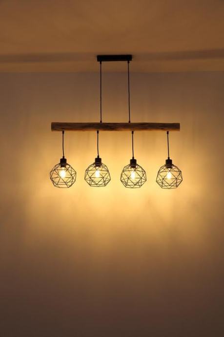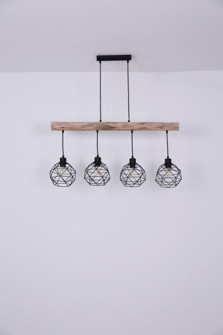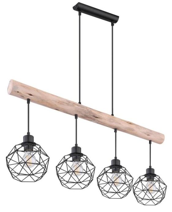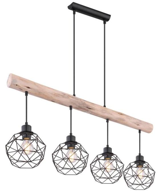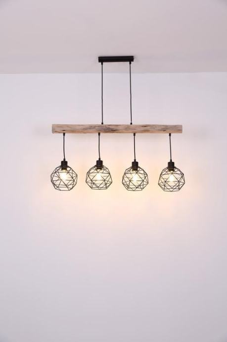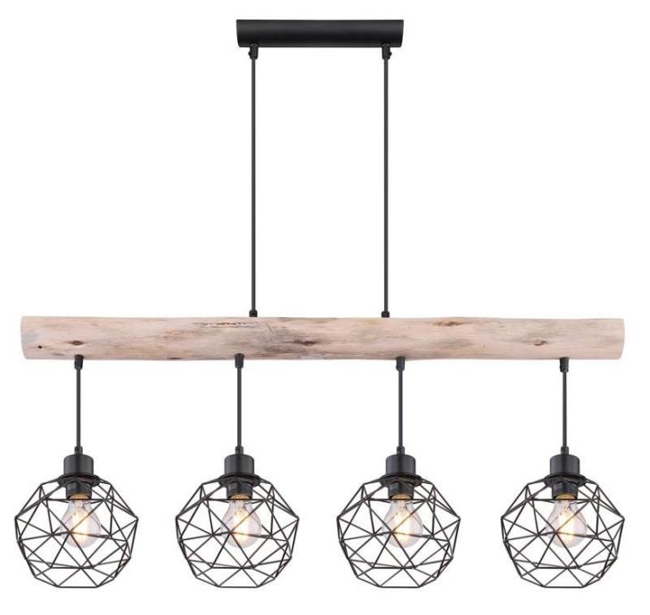 Les v kombinaciji s kovinoViseča svetilka Globo Theodor spretno združuje naravni videz lesa s sodobnimi mrežastimi senčniki iz črne kovine. Zaradi te elegantne kombinacije je 4-plamenska viseča svetilka prava paša za oči v vašem domu.Vsestransko uporabna razsvetljavaV dnevni sobi, nad jedilno mizo ali v kuhinji - viseča svetilka Globo Theodor poskrbi za domačno in prijetno vzdušje. S svojim klasičnim dizajnom podeželske hiše se odlično ujema z najrazličnejšimi bivalnimi situacijami in jo je mogoče harmonično vključiti v koncept prostora.Prilagodljiva višina za individualno oblikovanjeZaradi prilagodljive dolžine kabla lahko višino svetilke prilagodite svojim željam. Tako je mogoče optimalno osvetliti in oblikovati tudi prostore z visokimi stropi.Močna svetloba zaradi visoke zmogljivostiViseča svetilka Globo Theodor je primerna za sijalke z močjo do 60 W. S tem ne pričara le čudovitih svetlobnih trenutkov, temveč tudi zagotavlja dovolj svetlobe za vse zahteve vsakdanjega življenja.