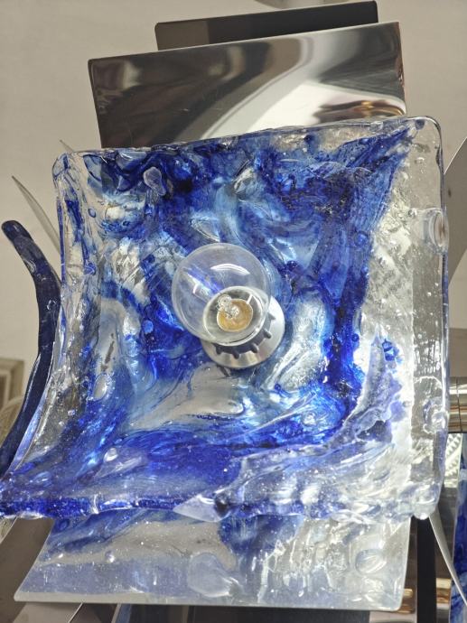 Italijanska viseča svetilka iz 60. in 70. let prejšnjega stoletja. Steklo/kovina/krom/murano ledeno steklo.