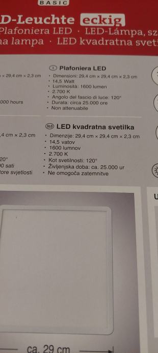 Prodajam novo LED stropno luč - plafoniero, ki je še v originalni embalaži. Svetilo ponuja sodobno osvetlitev za vaš dom in je idealno za montažo na strop v kateremkoli prostoru. Lastnosti so razvidne tudi iz slike: