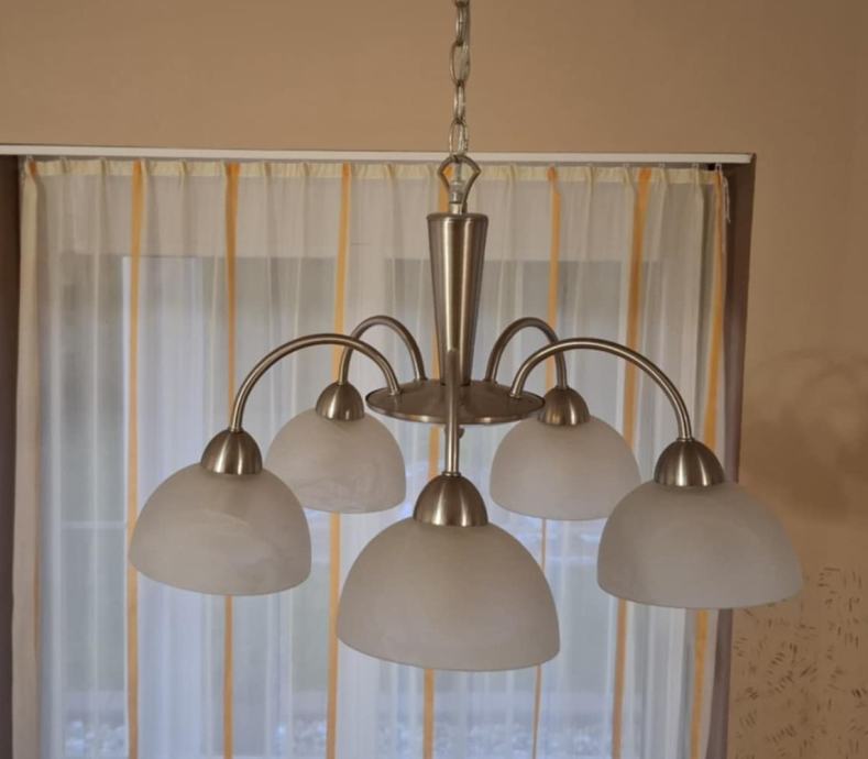 Prodamo rabljen luster s petimi bučkami v beli barvi. Brezhibno delujoč in nepoškodovan.