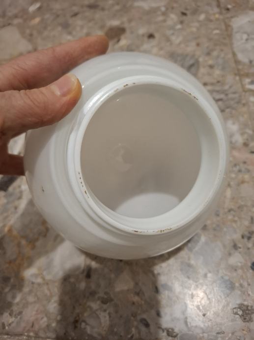 Prodam stekleno bučko plafonke bele barve. Premer odprtine je 6 cm. Zunanji premer navoja 7,2 cm.