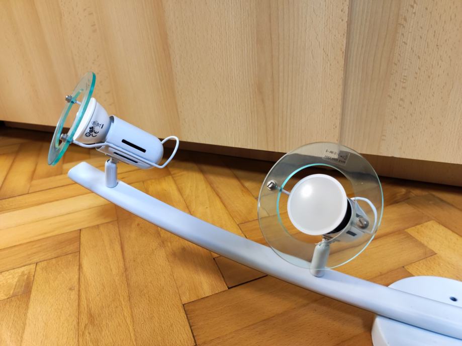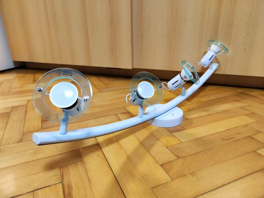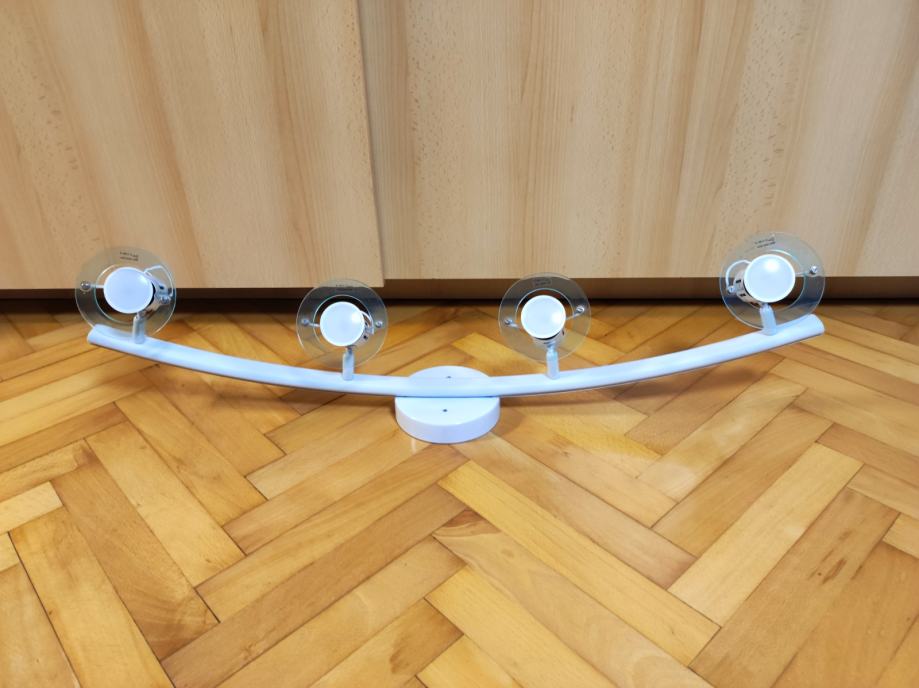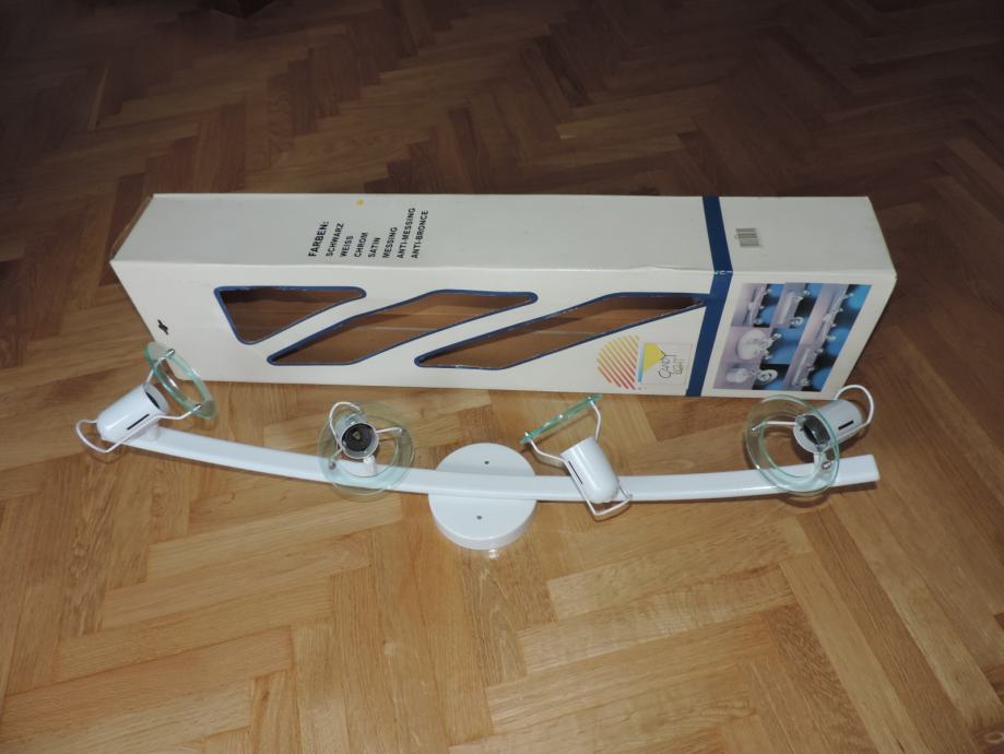 Prodam novo, še nerabljeno reflektorsko svetilko na štiri LED ali halogenske žarnice z navojem E-14. Žarnice niso vključene v to ponudbo. Lokacija Ljubljana, tel. 041 803 326.