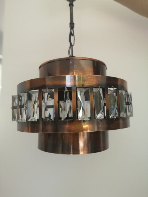 Prodajam rabljen retro stropni lestenec v bakreni barvi s steklenimi detajli. Eleganten kos v vintage stilu, ki bo dal vašemu domu poseben značaj. Lestenec je v dobrem stanju in predstavlja čudovit dodatek za nostalgičen ambient.