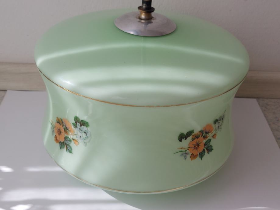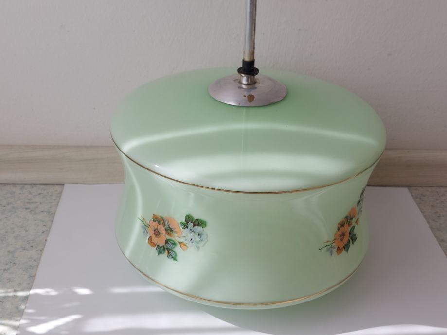 STARA,STEKLENA STROPNA LUČ,RETRO,VINTAGE LUČ,SMARAGDNO ZELENE BARVE
