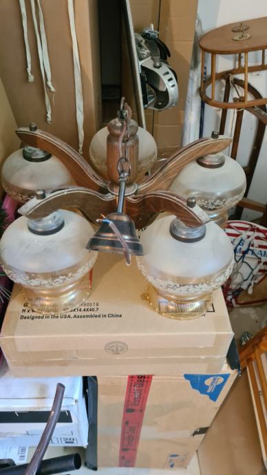 Starejše svetilo, staro preko 40 let, malo prašno, vendar brez poskodb ali prask, leseno ogrodje, idealno za montažo v kmečke sobe, vikende,...