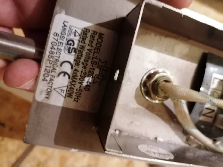 Luč je ohranjena brez poškodb, poleg so vijaki ter nosilec za prtirditev na stop ter 4kom. žarnic