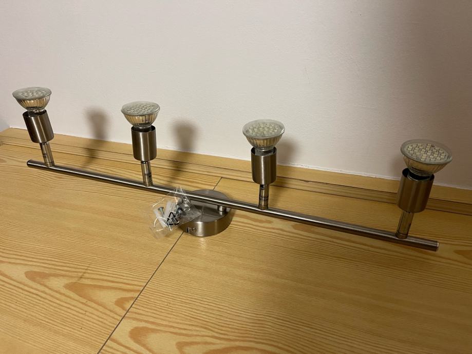 Prodam rabljeno stropno luč, stebrne barve s štirimi žarnicami. Glave žarnic so gibljive.