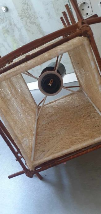 Viseča stropna svetilka iz naravnih materialov (bambus in kokosova vlakna), zaradi katerih oddaja prijetno toplo svetlobo. Dimenzije: Š26xG26xV27cm. Svetilo je nastavljivo po višini do ca. 90 cm oddaljenosti od stropa.