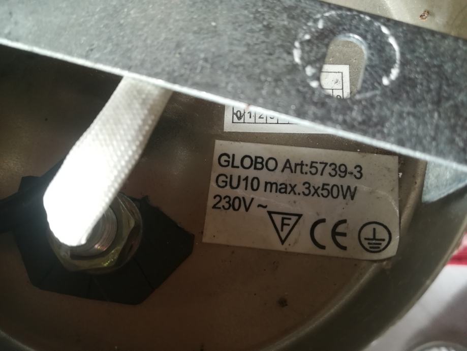Prodam sicer rabljeno, vendar odlično ohranjeno stropno svetilko. Ima tri halogenske žarnice s po 50W moči. Žarnice priložim. Zunanji premer luči je 30, skupna višina ( z žarnicami) pa je 15 cm. Na željo kupca lahko za dodatnih 10eurov priložim tudi Legrandovo zatemnilno stikalo (vklop in izklop s pritiskom na gumb, regulacija z njegovim vrtenjem).