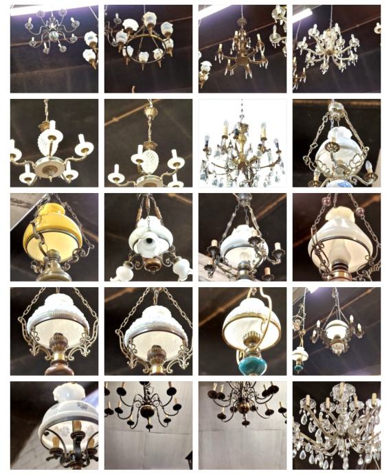 vec starinskih lestencev in stropnih luci prodam,