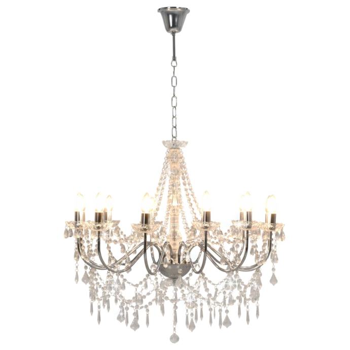 Ta odlično oblikovan lestenec s kristalnimi kroglicami bo zagotovo naredil velik vizualni vtis in bo prava zvezda vašega hišnega dekorja. Lestenec je primeren tako za domačo, kot za komercialno rabo. Navojna grla v obliki sveč in čiste kapljice prispevajo k pridihu starinskega čara ter ustvarjajo čudovito osvetlitev. Lahko izberete in namestite žarnice E14 v različnih barvah ter tako ustvarite sproščeno in spokojno vzdušje. Prosimo, upoštevajte, da izdelek ne vsebuje žarnic. S pomočjo materialov za montažo lahko visečo svetilko enostavno in varno sestavite in namestite.
