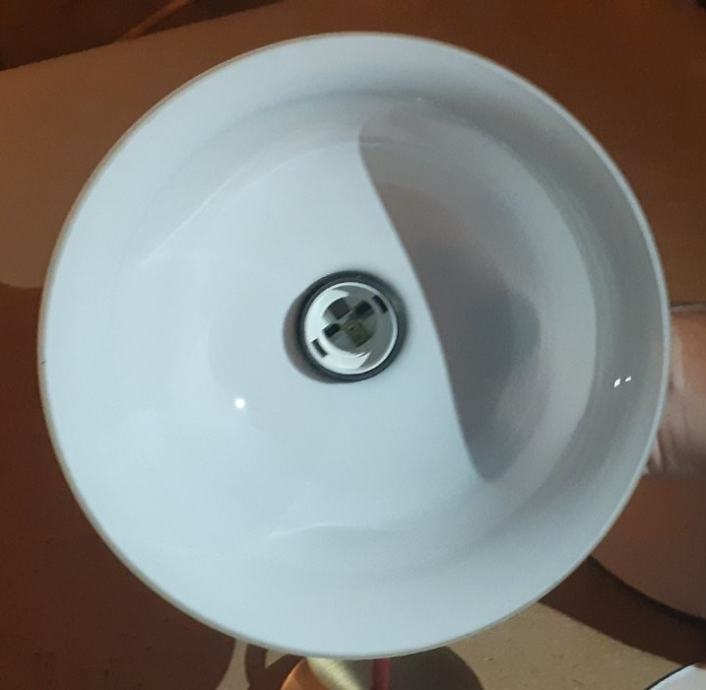 Prodam rabljeno a kvalitetno obnovljeno stropno visečo luč s steklenim širmom v beli barvi z zlato obrobo.