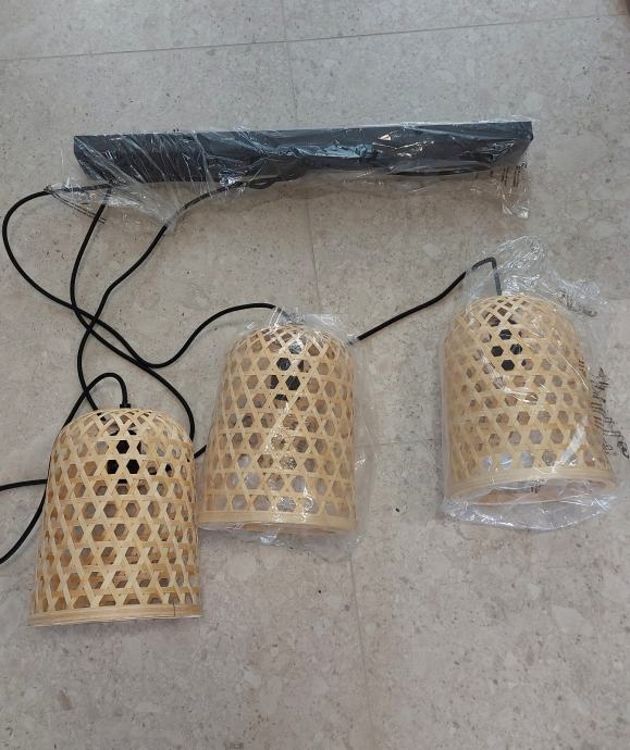 Set 3 luči z nosilcem. Bambus. Novo.