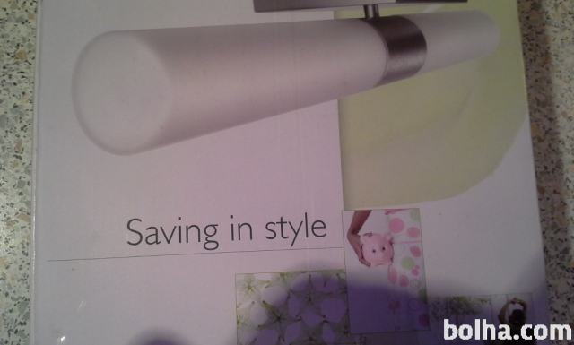 Prodam kot novo visečo svetilko PHILIPS serija ECOMOODS. Kovinski deli iz srebrnega brušenega aluminija, svetilna valja iz belega stekla. Višina od stropa nastavljiva 600 do 900 mm, širina vodoravnega dela 560mm, premer stekla 60mm. Dve varčni žarnici po 11W tip830. Poglejte slike.