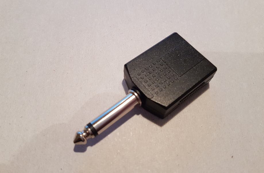 Prodam brezhiben jack adapter iz 2x 6,3 mm mono jack ženski v 1x 6,3 mm mono jack moški. Uporablja se ga lahko v deljenje stereo signala ali pa združevanje stereo v mono. Prodam zaradi neuporabe.