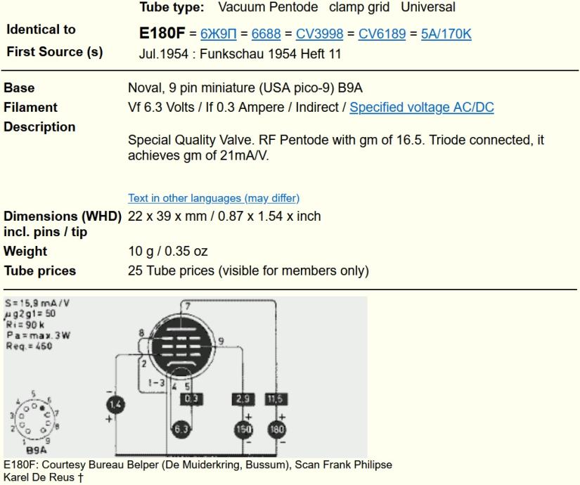 * * * 2X E180F Siemens, 10 000 h life time, = 6Ж9П = 6688 = CV3998 = 5A/170K = CV6189 , kvalitetnejša varijanta EF 180 ( = EF80 ) (60 eut )