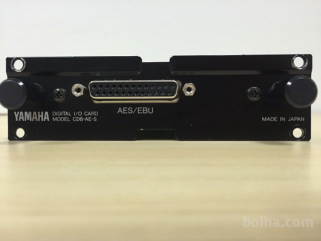 AES EBU I/O vmesnik za Yamaha 02R mešalko, 8 kanalov I/O, D-Sub konektor 25 pin. Nekadilski home/project studio, zelo malo rabljeno in odlično ohranjeno. Prevzem možen v MB ali LJ. Pokliči ali pošlji SMS na 041 545 979 ali piši na guru545@gmail.com.