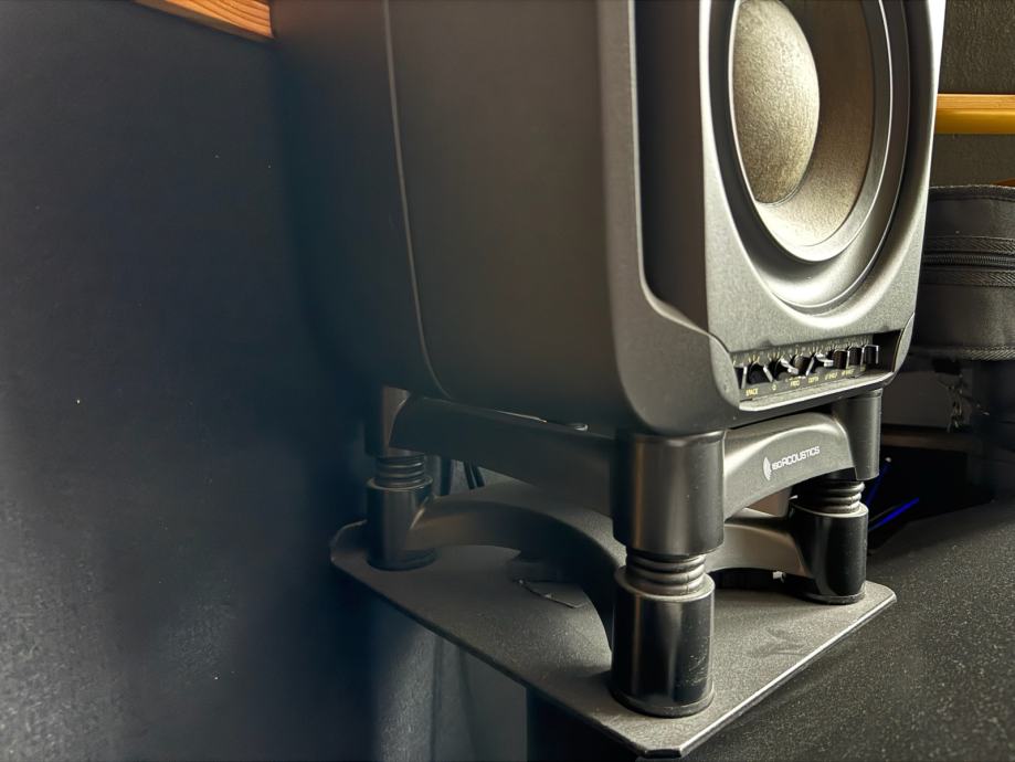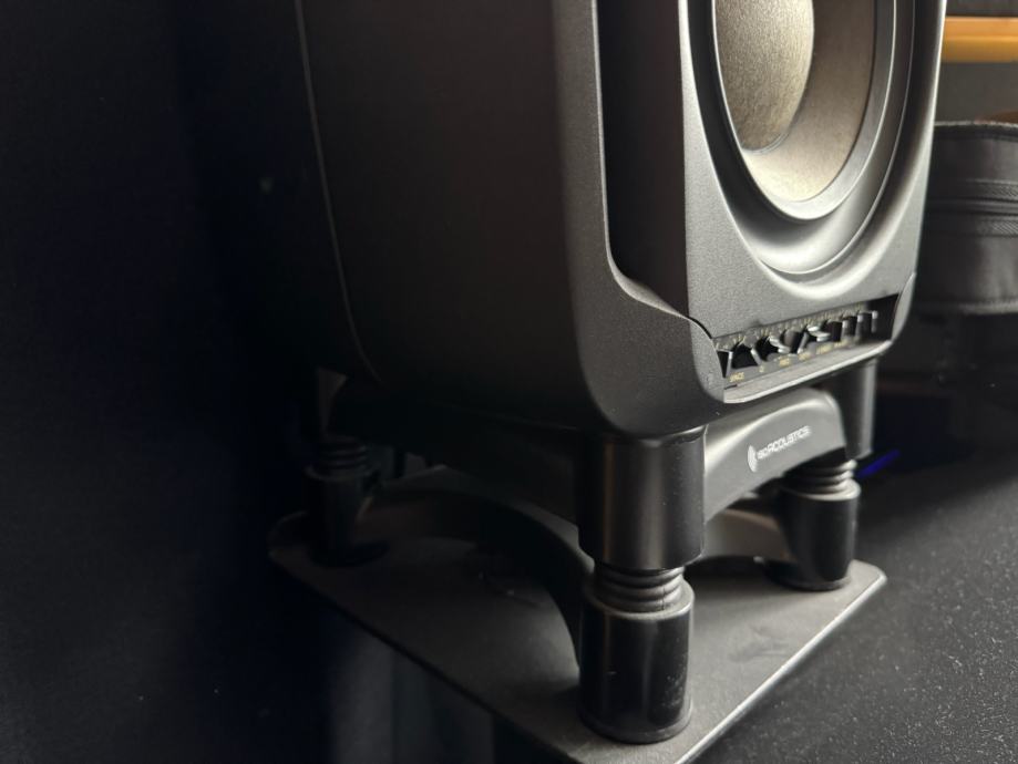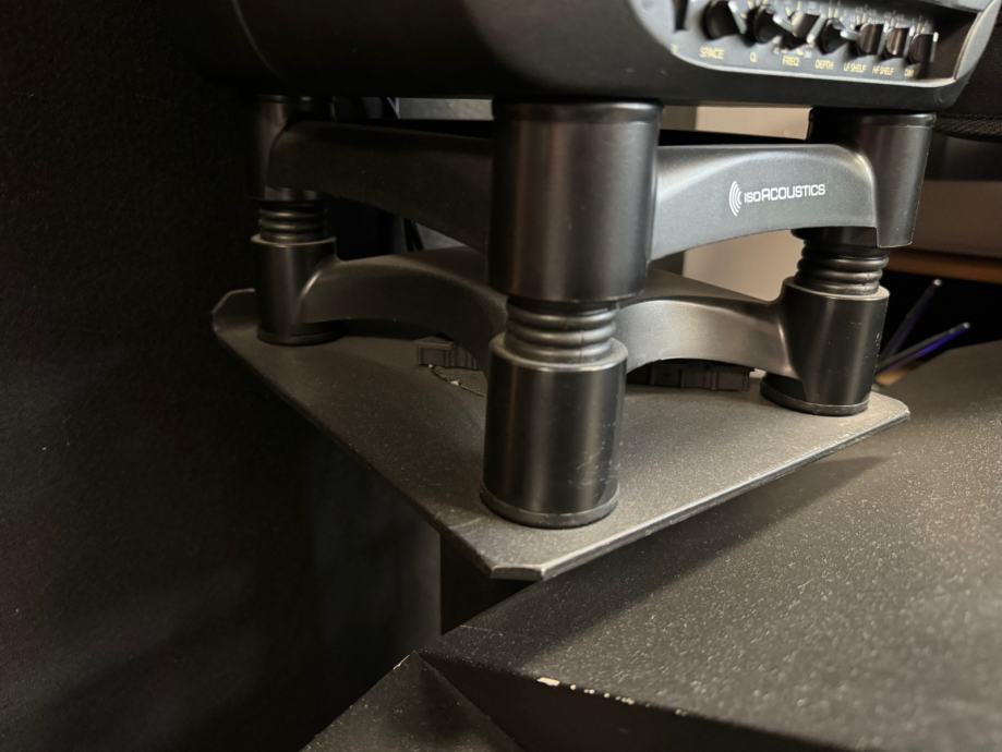 - Vključeni custom stojali, dodatno stabilizirani z mivko za maksimalno izolacijo, spike-i in akustično stabilnost